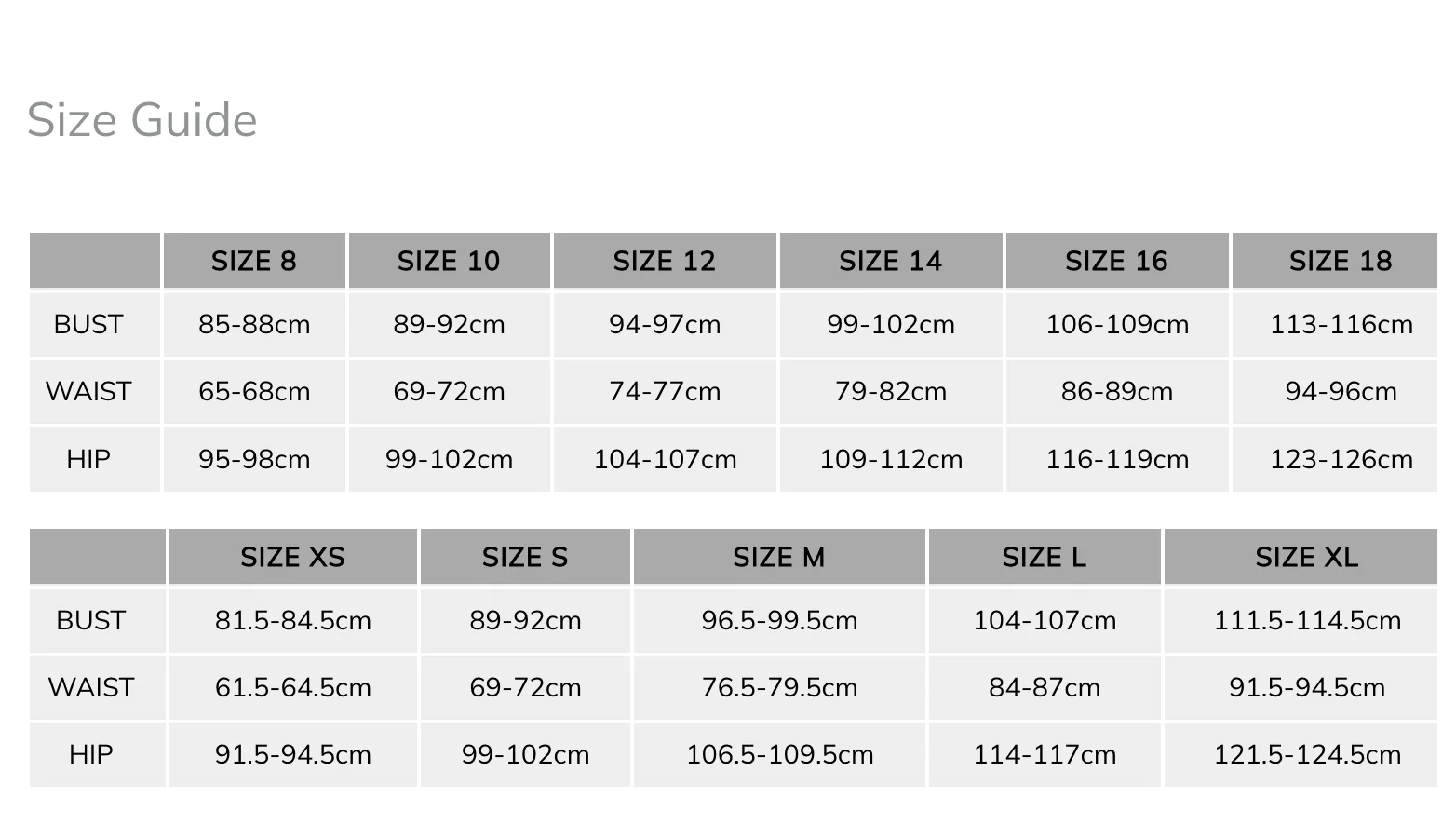 Size Bust (cm) Length (cm) Sleeve (cm) Shoulder (cm)