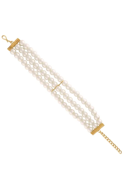 Elegant Faux Pearl Multi-Strand Bracelet This stunning bracelet features an elegant design crafted with three strands of lustrous faux pearls.