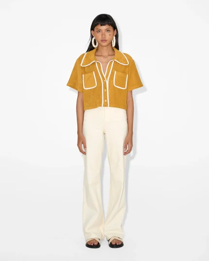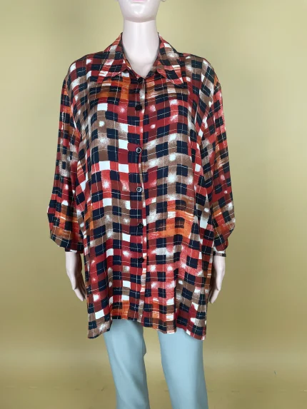 This beautifully designed shirt is crafted from luxurious silk, giving it a soft and smooth texture that feels delightful against the skin. The fabric’s natural sheen adds a touch of sophistication, making it perfect for both casual outings and semi-formal occasions.