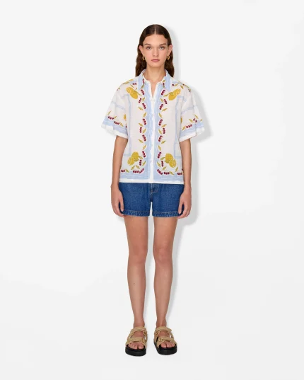 Perfect for warmer days, this shirt is breathable and lightweight, ensuring you stay comfortable throughout the day. The button-down front adds a traditional touch, while the relaxed fit provides a flattering silhouette for various body types.