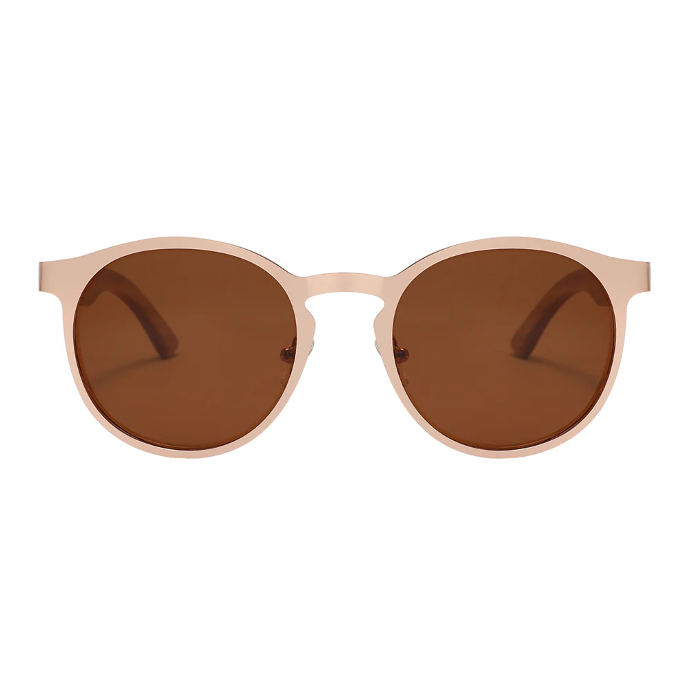 Stylish Rose Gold Sunglasses with Wooden Temples