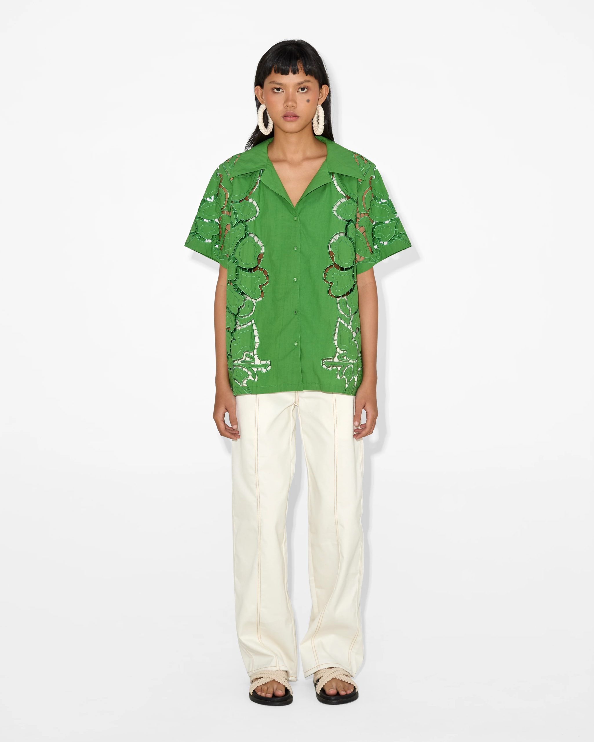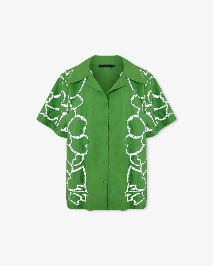 Vibrant Green Embroidered Short-Sleeve Shirt
