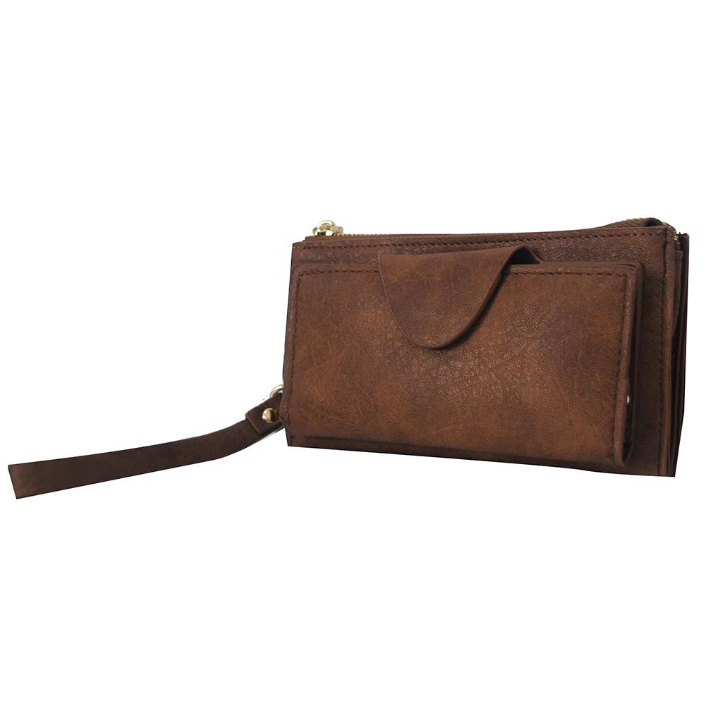 Overall, this faux leather wristlet wallet offers a blend of modern functionality and timeless style, making it a great addition to any collection of accessories.